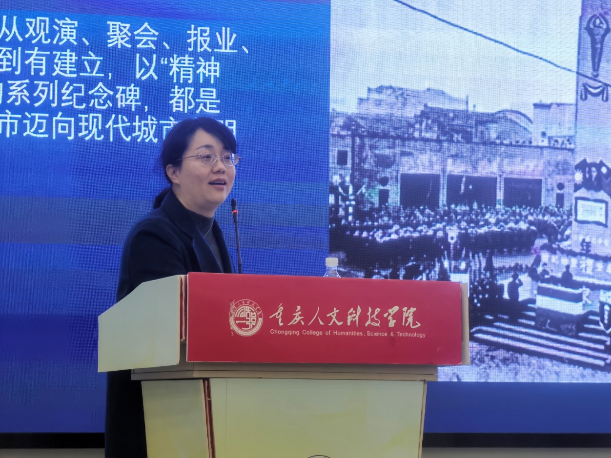 为进一步提升学院师生的理论知识与专业素养,增强师生文化创新意识,提升文化素养,2024年3月8日上午10:00,建筑与设计学院邀请四川美术学院副教授、硕士生导师舒莺为学院老师们、同学们开展了主题为“烽火同构,文脉未央——抗战西迁时期的昆明、重庆城市文化形象比较”的学术讲座。讲座在重庆人文科技学院雕塑园报告厅进行,由建筑与设计学院党总支书记兼副院长唐湘晖主持,学院100余名师生参与。