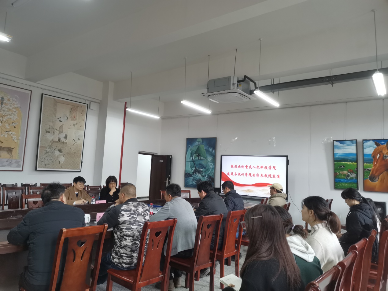 2024年3月12日,重庆人文科技学院建筑与设计学院党总支书记兼副院长唐湘晖、艺术设计系教授王越以硕士生校外合作导师身份,赴重庆三峡学院美术学院进行交流。
