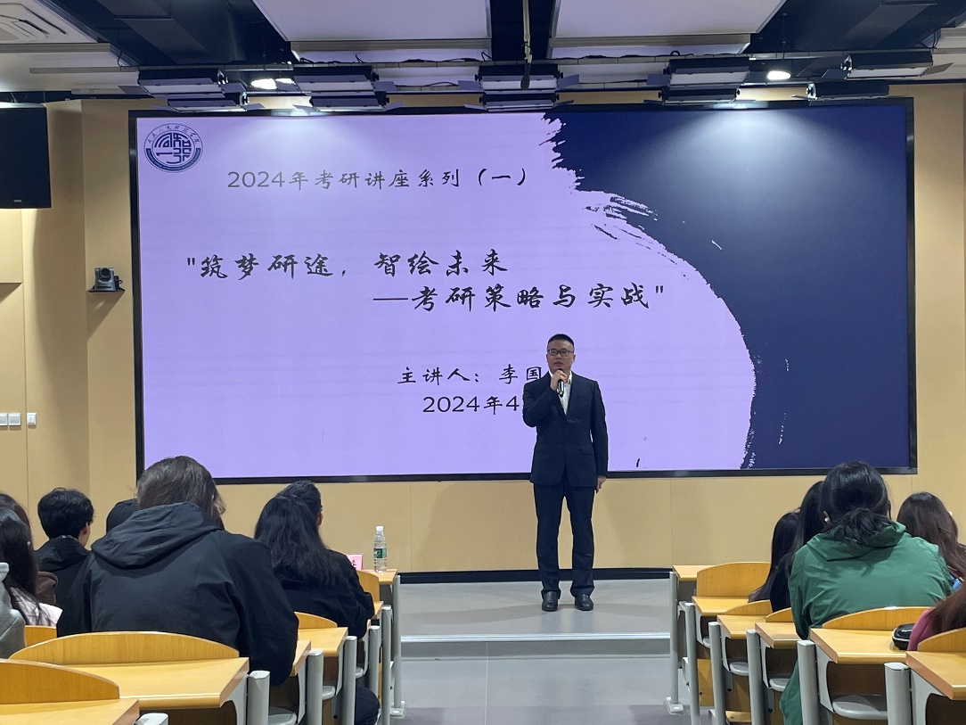 随后,李国庆分别从考研的意义与重要性、院校专业定位规划、考研备战总体战略和技巧方法等多个方面展开,多维度的对同学们进行专业的考研指导。同时,他强调同学们要选准定位,坚定信心、不断提高自律意识,尽早明确目标方向,根据自己的实际情况,制定可行的目标,充分做好准备,全面提升自我。