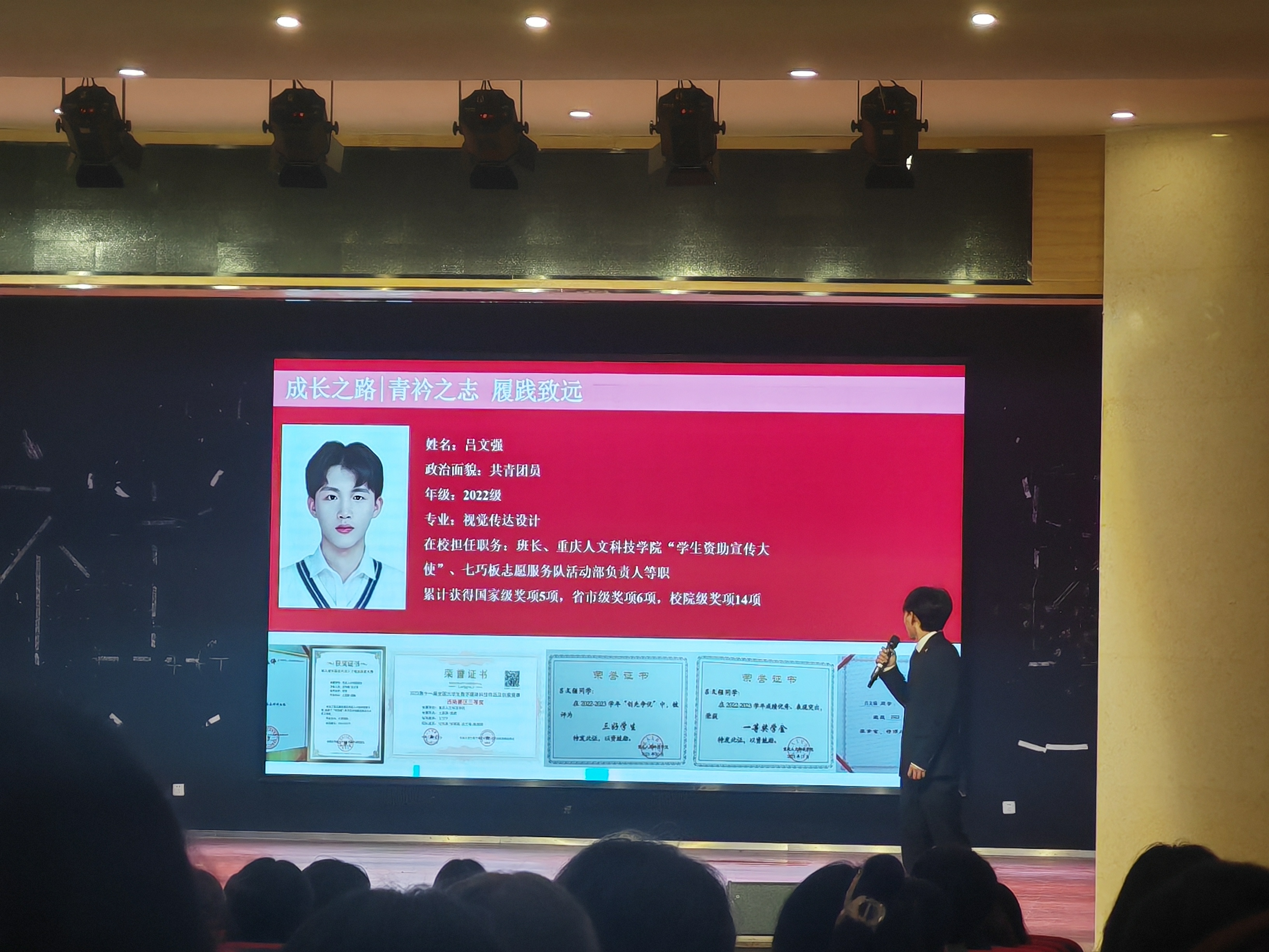 为进一步加强建筑与设计学院学风建设,发挥优秀学生的榜样示范作用,建筑与设计学院于4月16日中午在雕塑园演奏厅开展“心有榜样,行有力量”榜样力量分享会,学院特邀重庆市优秀学生干部获得者袁一焯、齐超,重庆市三好学生获得者吕文强,重庆市志愿服务先进个人获得者杜雨虹为大一、大二同学作学习、工作经验交流,共计200余人参与。