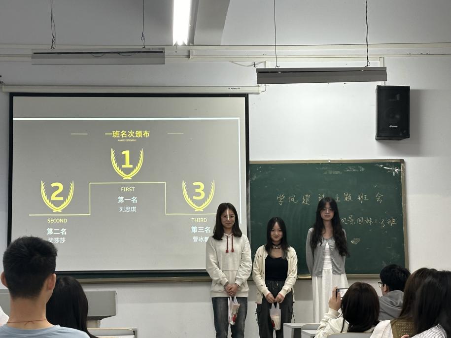 在此次班会过程中,着重突出学风建设对于个人成长和集体进步的重要性。鼓励同学们积极参与到活动中来,发挥自己的想象力和创造力,共同为班级学风建设贡献力量,同时在此次班会中,对上学期在风景园林色彩基础课程中的优秀作业进行展示,对获得优异成绩的同学们进行了表彰,优秀作业反映了同学们对知识的掌握情况,更是对其学习态度、创新思维和实践能力的全面展示。