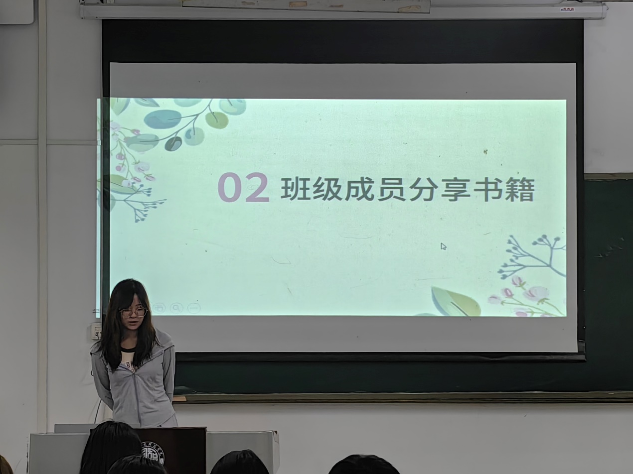 活动伊始,主持人阐述了本次活动的目的及意义,使同学们初步了解阅读在学习生涯中的重要性。随后由各班同学依次分享自己喜欢的文学作品,通过分享琳琅满目的书籍,拓宽同学们的知识储备,提高学生的阅读兴趣,有利于推动班级良好学风的建设,促进班级成员之间的沟通和交流。