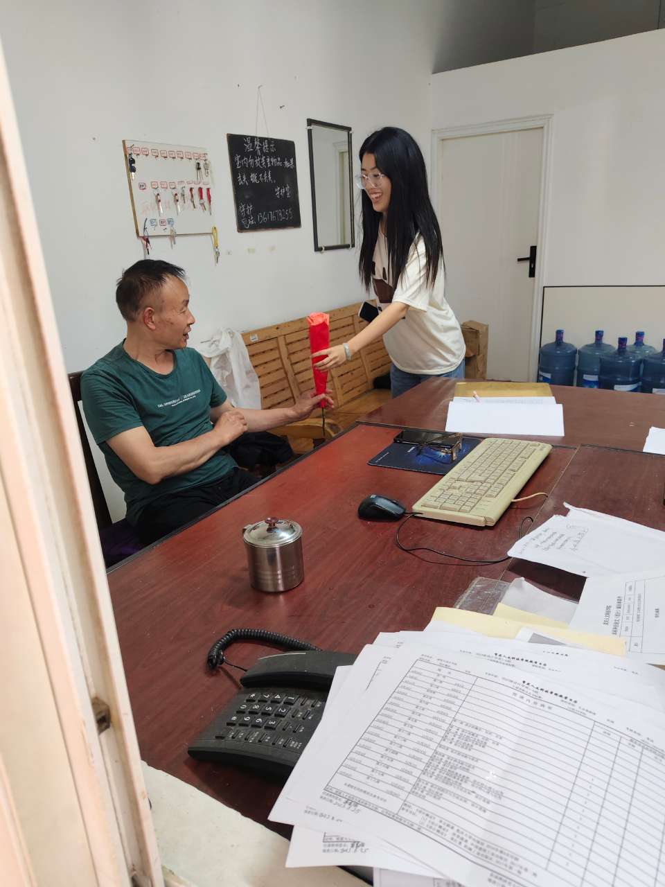 活动当天,学院的学生们精心准备了鲜花。他们带着满腔的热情和敬意,将这些充满心意的礼物送到学院每一位辛勤工作的劳动者手中。这些劳动者在平凡的岗位上默默付出,用自己的知识、劳动建设学院,为学院的正常运转贡献着自己的力量。在送花的过程中,同学们与劳动者们进行了亲切的交流,听取他们的故事和心声。许多劳动者表示,在劳动节收到如此特别的礼物,感到非常温暖和感动。