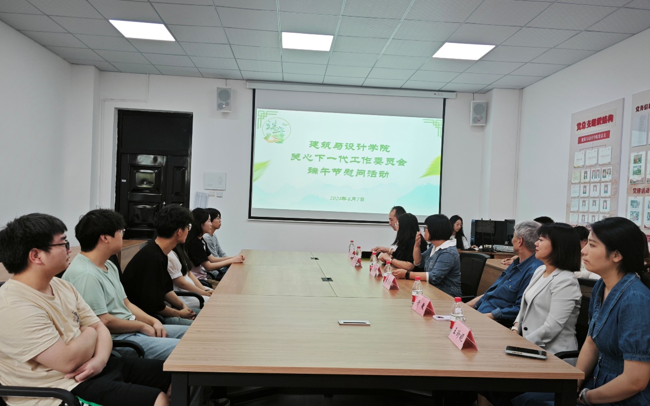 2024年端午佳节来临之际,为关心青年学生健康成长,建筑与设计学院关心下一代工作委员会于2024年6月7日中午12点在8203开展了端午节慰问活动,学院关工委主任唐湘晖、副主任袁恩培、梁宁华出席活动并与同学们亲切交流,关工委委员黄微、王珍妮、杨涵以及部分辅导员老师代表参加活动。