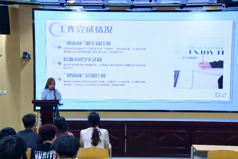 大会开始,由团总支、学生会各部门成员进行述职,大家围绕本学期的工作概述、取得的成绩、存在的不足以及未来展望进行了报告,不少成员认识到了要从自己的实际情况出发,增强纪律观念,培养组织意识,从思想上提高责任意识的重要性,各部门也将不断提升创新实践能力,加强组织内部建设,努力构建一个积极和谐上进的工作环境。