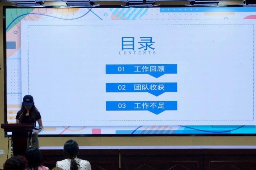 随后由学院团总支书记王珍妮对第二学期的工作进行总结,王书记首先肯定了大家本学期的成绩,这学期围绕服务师生强化了队伍建设、学生干部素质能力提升、团学活动丰富多彩且品质提升。她指出在取得荣誉的同时,同学们要戒骄戒躁,认真总结工作中存在的不足,不断改进力求将工作做得更好,更好的服务学院师生。她强调各部门、各成员之间要加强交流和协作,创新活动思路,促进学院团学活动质量提升,梳理活动品牌。