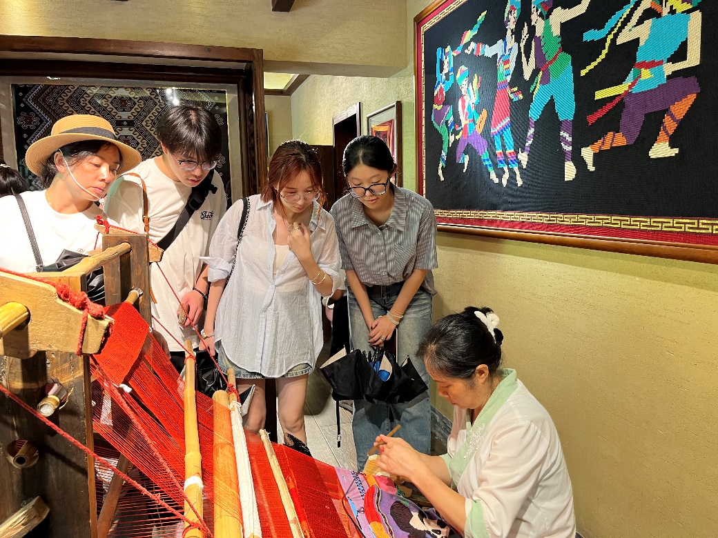 在酉州古城酉阳非遗馆、龙潭镇非遗传承所、酉阳西兰卡普传统制作技艺非遗工坊等地,实践团积极调研酉阳非遗文化特色,了解现有市场非遗文创产品现状。