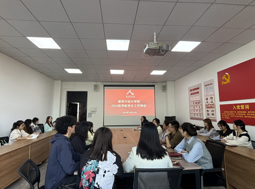 为促进新生养成良好的班风、学风,激发一年级学生学习积极性,帮助2024级导航学长明确工作要点和目标,推动2024级导航学长工作顺利推进,2024年10月22日,建筑与设计学院在8203会议室召开了2024级导航学长工作例会。本次会议旨在总结开学至今2024级导航学长的工作成效,明确下一阶段的工作方向,并为导航学长们提供一个交流与学习的平台。会议由建筑与设计学院党总支副书记梁宁华主持,学院全体辅导员、2023级优秀导航学长代表以及全体2024级导航学长参加会议。