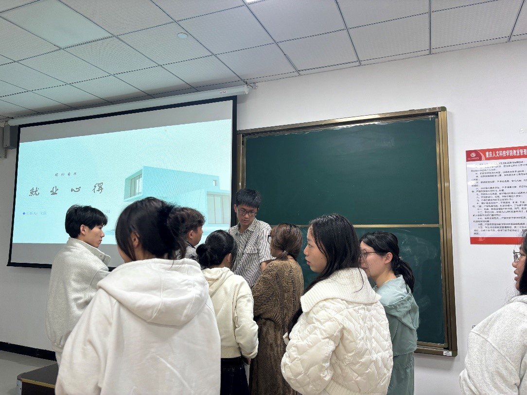 环境设计专业2023届文浪校友,目前就职于重庆唐卡装饰工程集团有限公司。他着重向同学们介绍了大学期间的收获和毕业后的职业选择心路历程。他回忆道,在校读书期间,曾担任过班长、寝室长等职务,工作认真负责,课余时间也会积极参加学校组织的各项活动,在校期间取得了较好的成绩,曾被评为2023届校优秀毕业生。