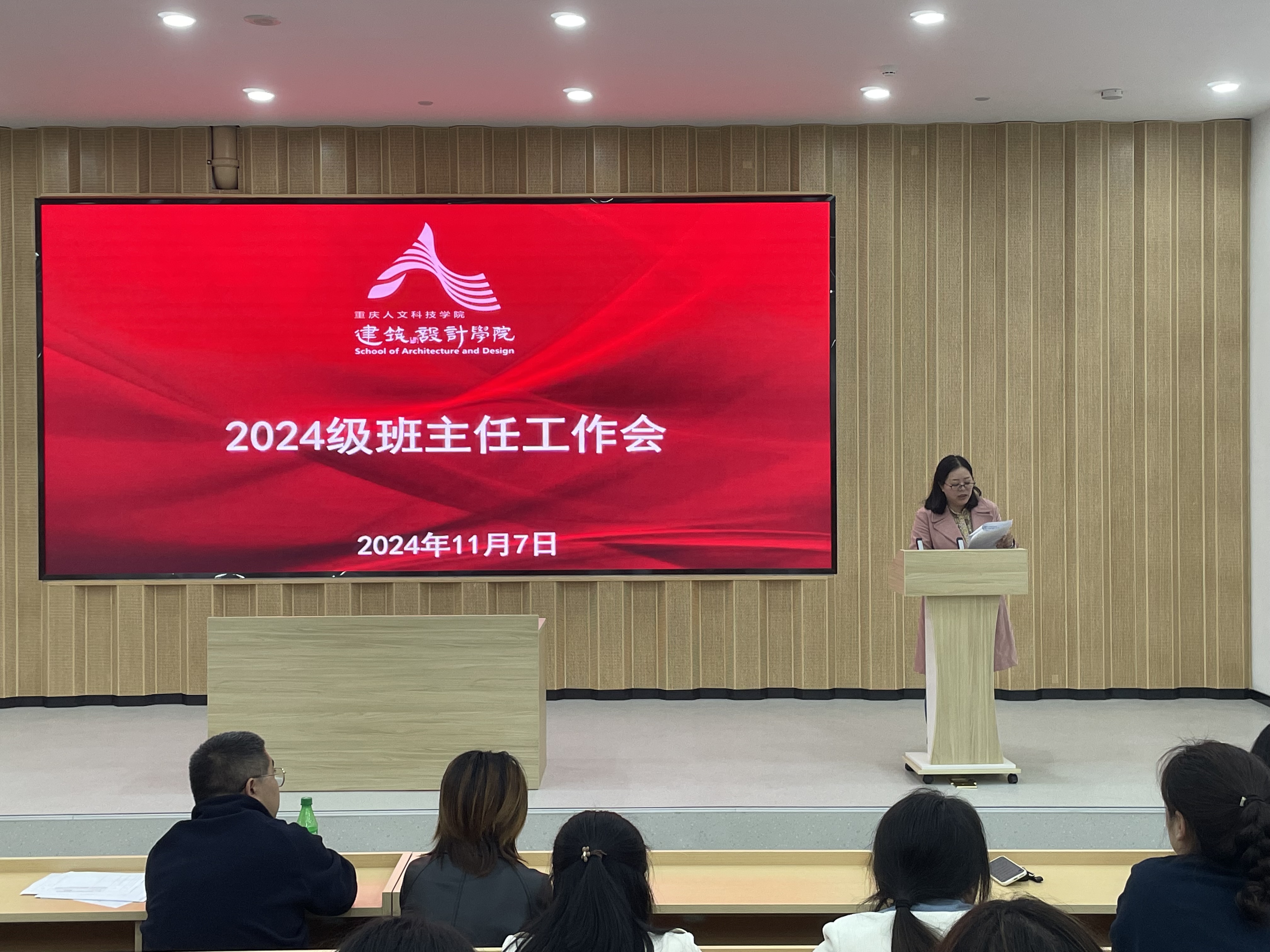 11月7日下午5点,建筑与设计学院在十七教106报告厅召开了2024级班主任会议,学院党总支书记唐湘晖、2024级新生班主任和辅导员、学院社区辅导员参加,会议由学院党总支副书记梁宁华主持。