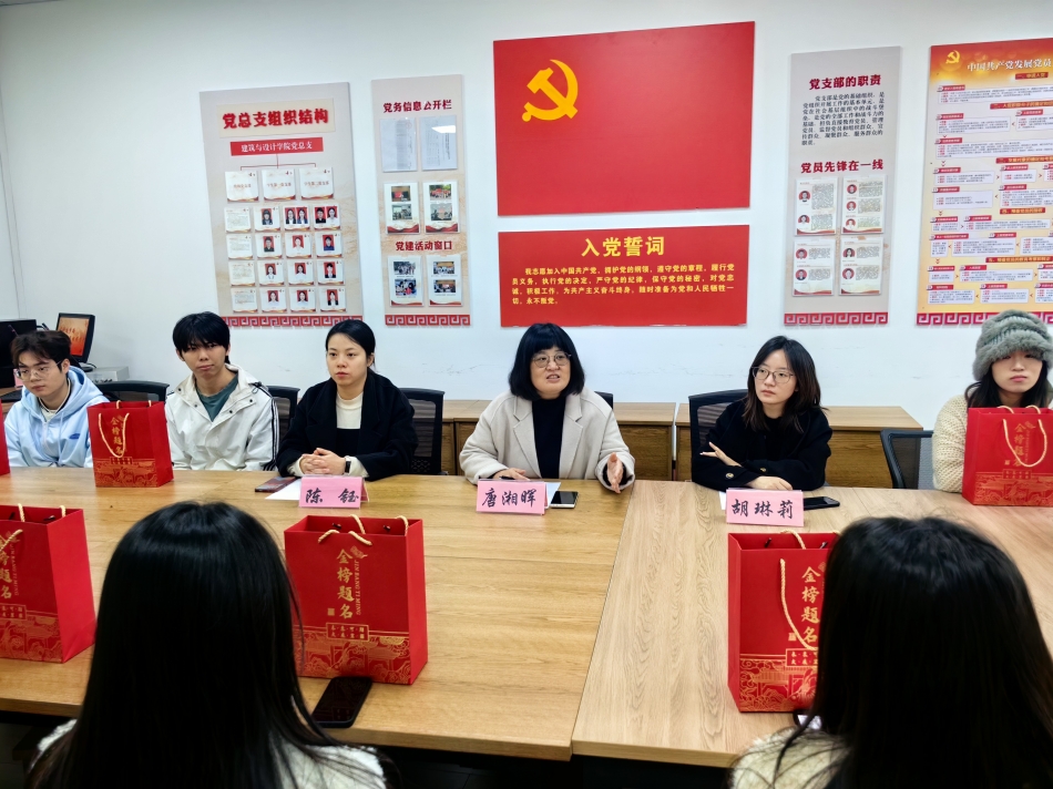 为鼓舞学生考研士气,坚定考研必胜信念,缓解考研压力,建筑与设计学院于12月4日在慧思楼8203教室开展“考研逐梦路,关怀伴君行”考研慰问暨考前动员会,为备战考研学生送上祝福大礼包。建筑与设计学院党总支书记唐湘晖,毕业班辅导员陈钰、胡琳莉参加慰问活动。