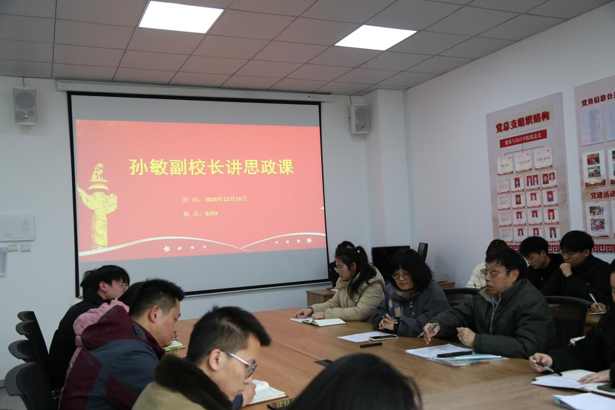 2024年12月10日中午,学校党委委员、副校长孙敏为计算机工程学院、建筑与设计学院讲授专题思政课。