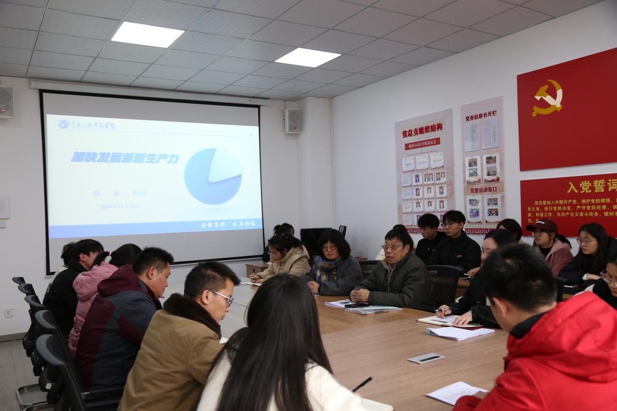 思政课第二部分,孙敏以“加快发展新质生产力”为题,从“什么是新质生产力”、“为什么要发展新质生产力”、“新质生产力逻辑关系”、“几点思考”四个方面为大家详细阐释了新质生产力的概念、内涵、特征及发展新质生产力的重要意义。