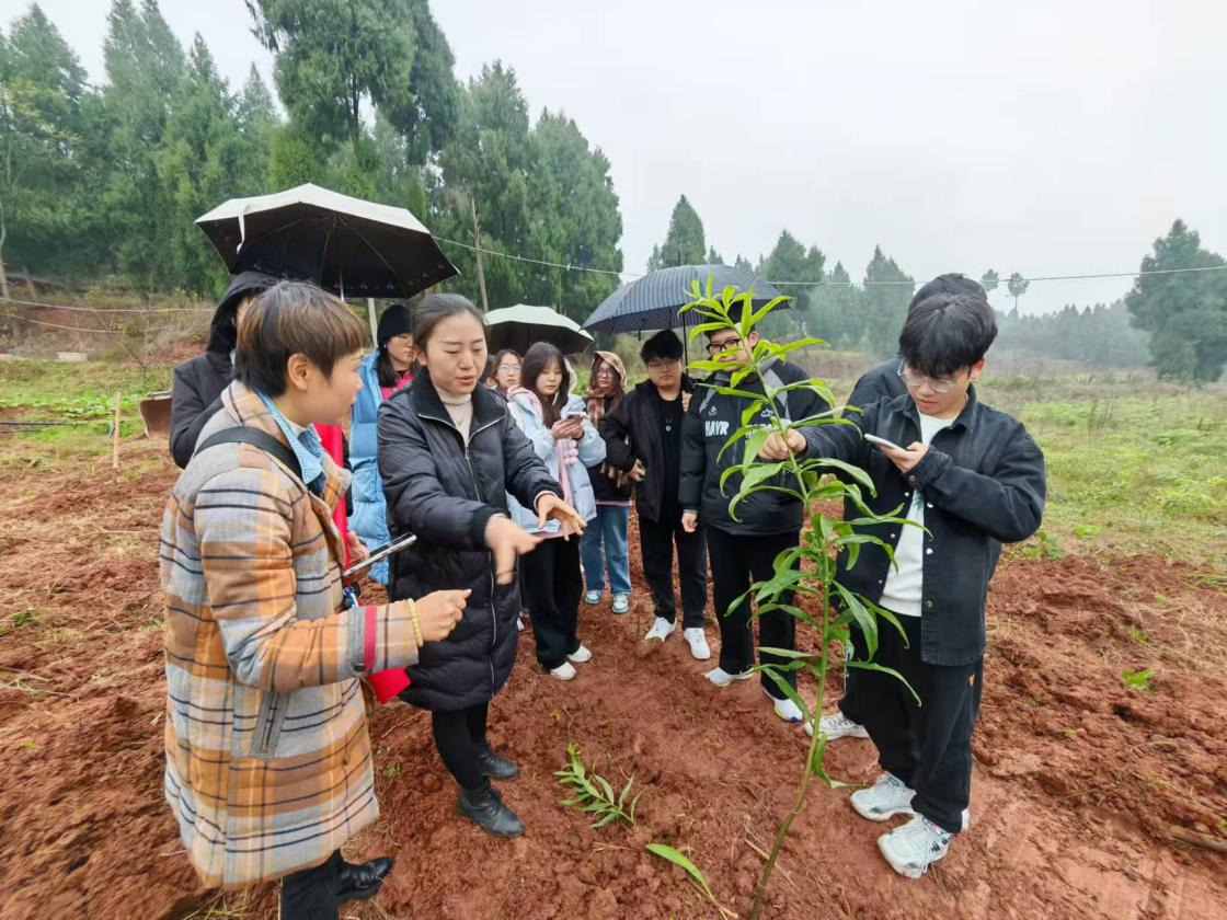 2024 年 12 月 12 日,建筑与设计学院为助力乡村振兴,教师党支部书记王越与组织委员王晗带领艺术设计专业10名学生组成考察队奔赴潼南,开启开放课程《黄精产品包装设计项目实践》考察活动,得到潼南区农村农业委员会大力支持,郭湘站长接待。
