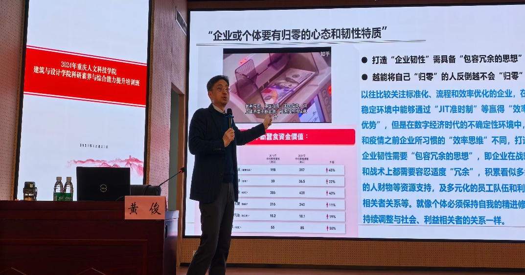 12月21日-22日,重庆人文科技学院建筑与设计学院科研素养与综合能力提升培训在西南大学出版社大楼305教室顺利举行。