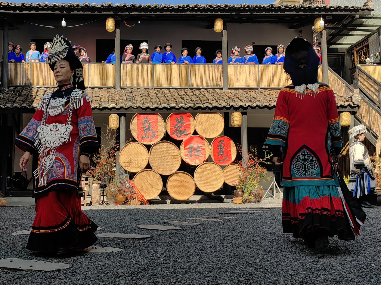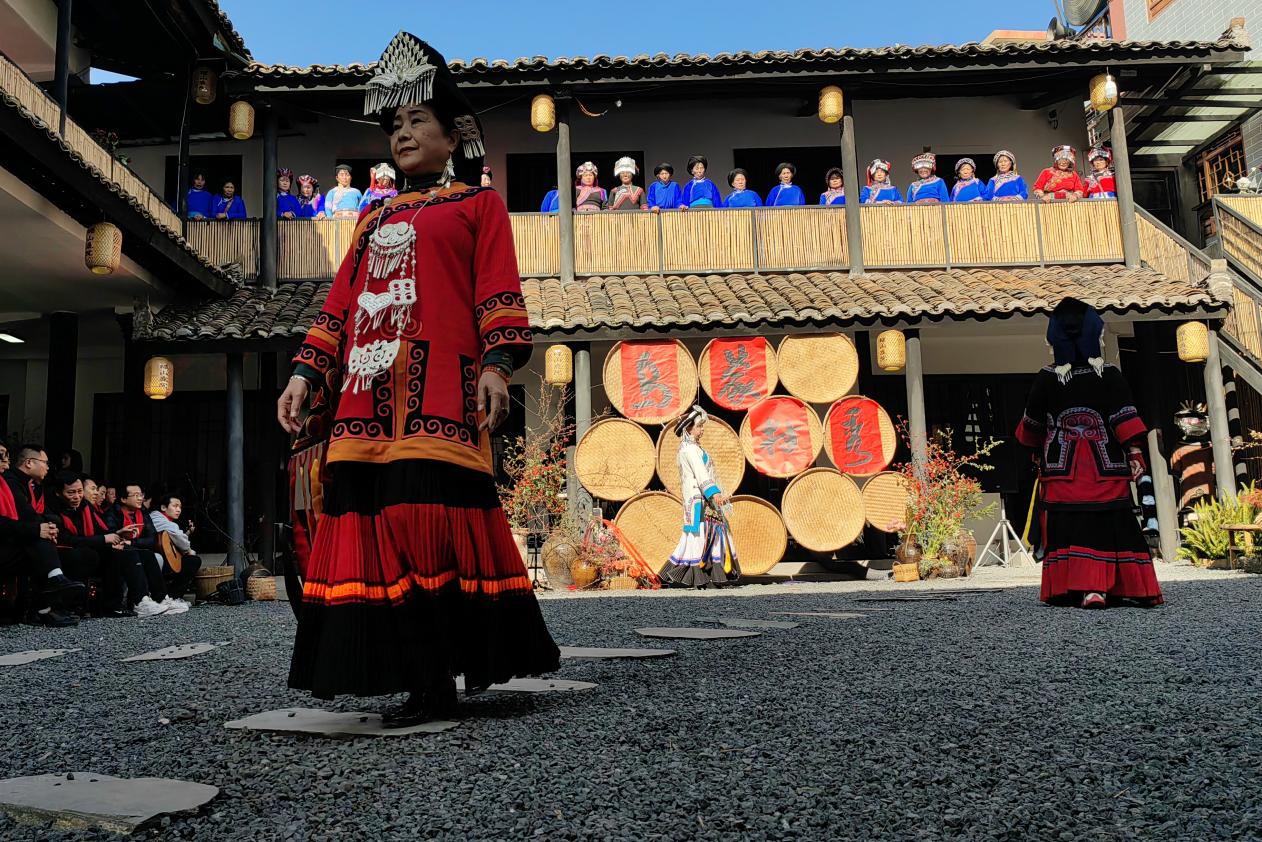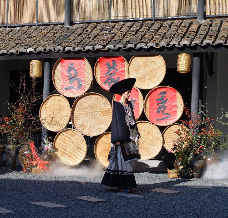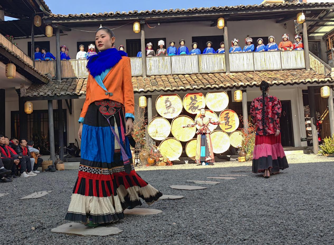 活动现场精致而充满创意,村民们身着节日盛装,纷纷前来观参与。阿莎阿格以其悠扬的歌声为活动拉开序幕。庭院里特意邀请的模特与彝族阿妈们身着精心准备的服装,以特有的方式演绎着他们服装。