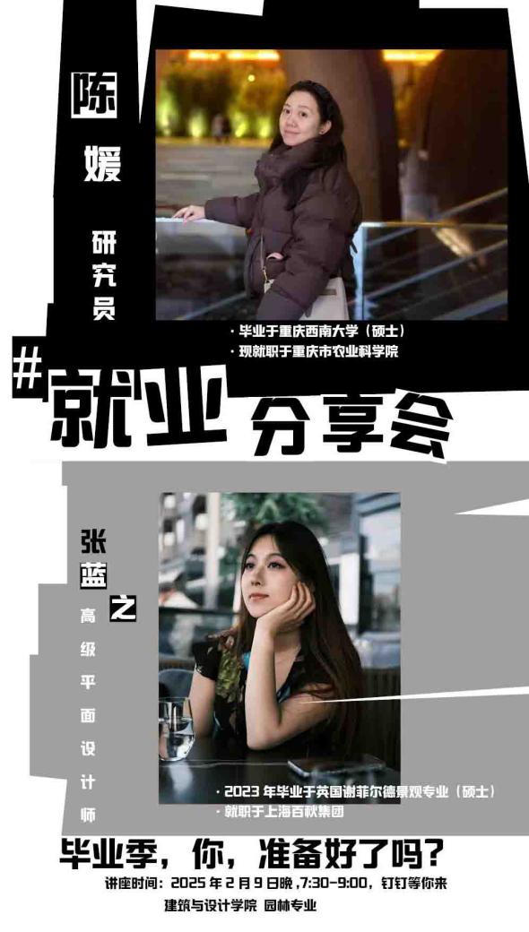 张蓝之老师则从跨专业求职的角度出发,分享了如何突破学科界限、实现职业转型的实用策略。她指出,园林专业学生除了传统就业岗位外,还可凭借自身的美学素养、空间思维和设计技能,探索品牌设计、新媒体运营、视觉艺术等相关行业。张老师还详细分析了跨专业简历制作的关键技巧、作品集优化策略和个人优势挖掘等方面,为有意向转型的同学提供了清晰的求职思路。