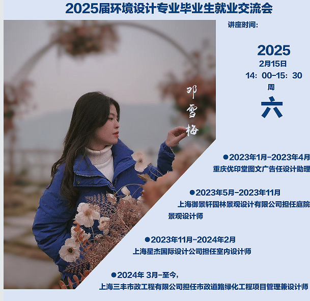 为全力推进2025届毕业生促就业工作,指导毕业生深入了解就业形式,激发学生就业热情,2025年2月15日,建筑与设计学院环境设计专业成功开展“暖心行动.筑梦启航”2025届环境设计专业就业分享交流会。本次分享会特别邀请具有丰富行业及求职经验的校友——邓雪梅作为线上嘉宾。她以自身丰富的工作经历为基础,向师生们深入剖析了设计行业的现状,并分享了简历制作、面试技巧及宝贵的工作经验。建筑与设计学院党总支副书记梁宁华、环境设计教研室主任刘露、辅导员胡琳莉、25届环境设计全体毕业生参加了本次活动。