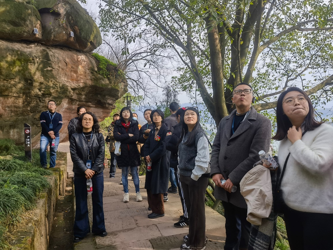 活动当日,全体教职工带着愉悦的心情,轻装简行,沿钓鱼城古道拾级而上,踏上了这片充满历史韵味的土地。古道沿途绿意萌发,山花点缀,大家或驻足记录古建筑与自然景观的和谐交融,或畅谈专业领域的设计灵感,将踏青活动与学科特色相结合,在观察中深化对“两山”理念的实践认知。登顶后,众人于观景台远眺嘉陵江与涪江交汇的壮丽景色,感受历史遗迹与生态保护协同发展的成果,现场气氛热烈。