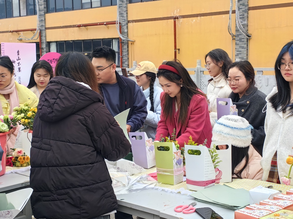 师生们在认真挑选搭配的鲜花