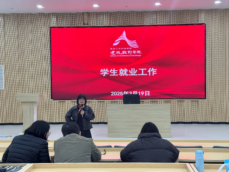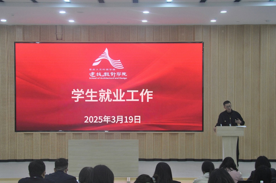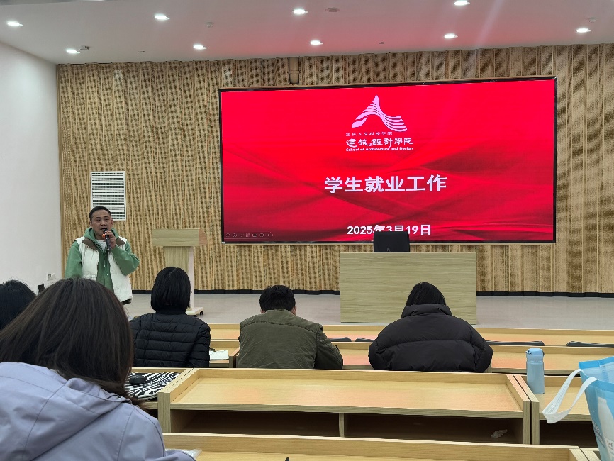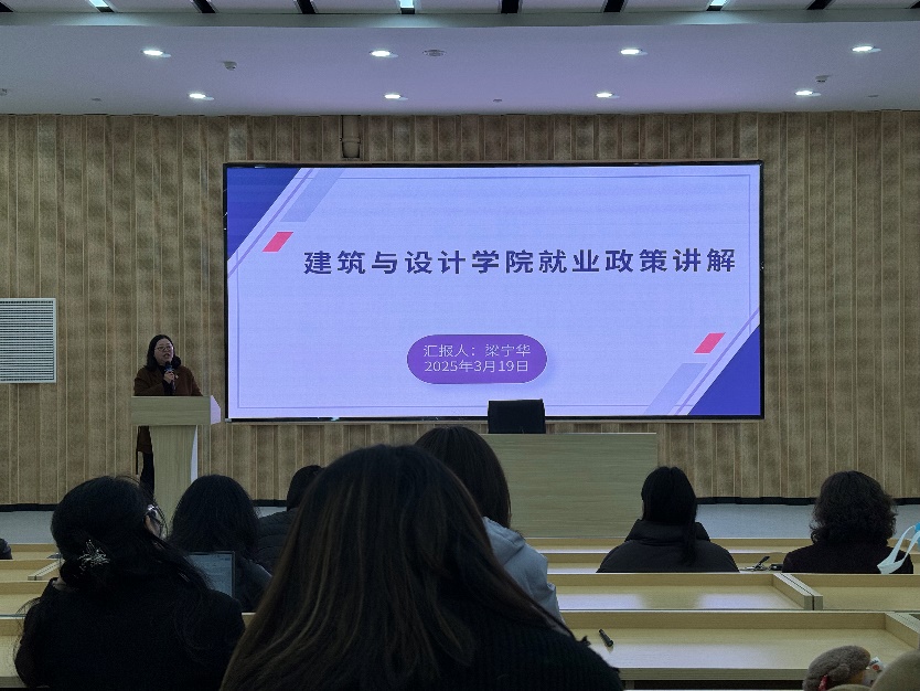 为统一教职工就业思想,凝聚全院合力助推2025届就业工作,建筑与设计学院于2025年3月19日下午在17教106报告厅召开全院教职工就业专题会,全体教职工参加,会议由唐湘晖书记主持。