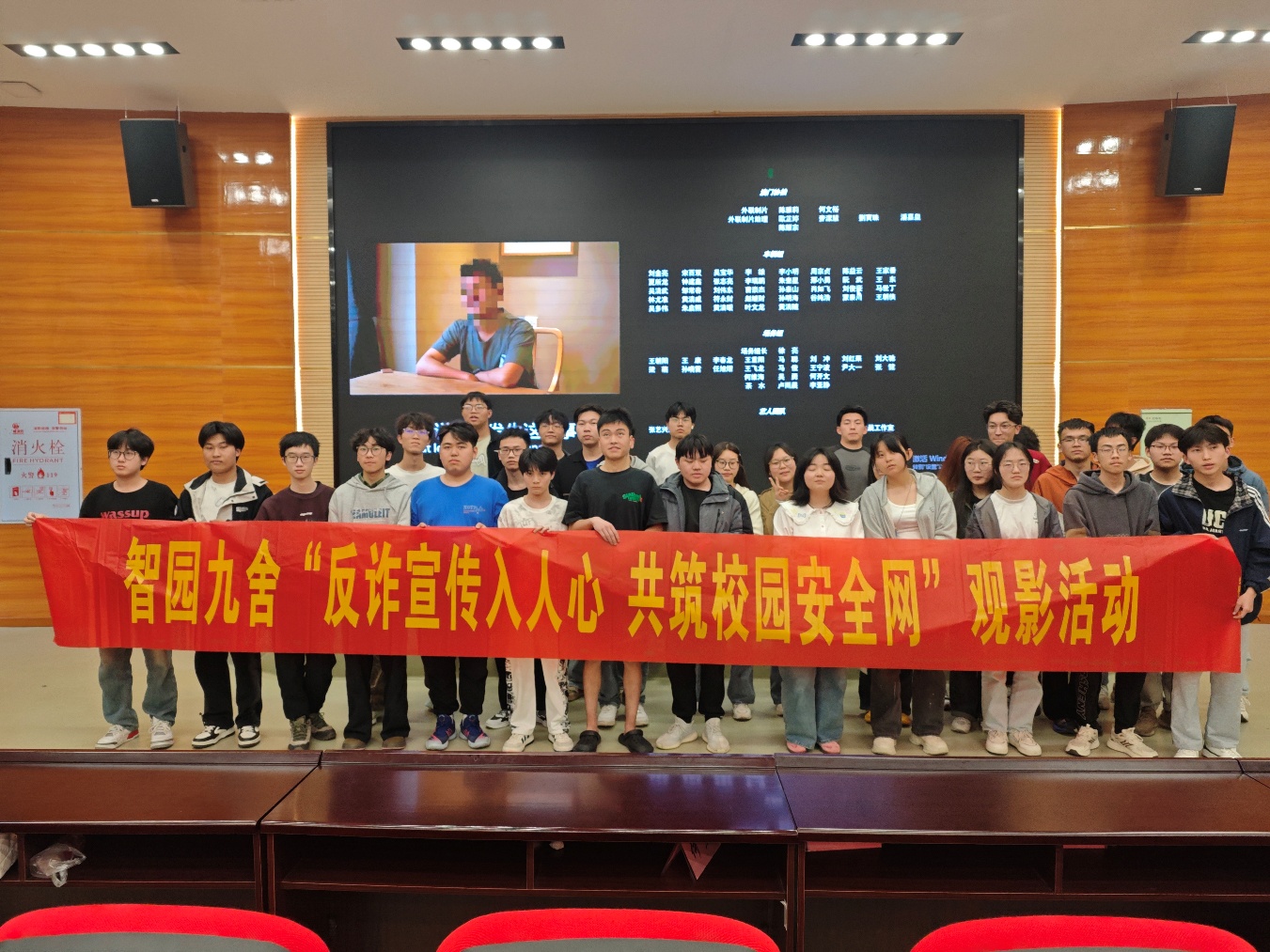 为响应校园网络反诈宣传,加强网络安全教育,提升同学们的反诈骗意识,2025年3月25日,智园九舍大学生自律委员会在明德楼报告厅组织观看反诈题材电影《孤注一掷》,累计参与观影人数100余人。