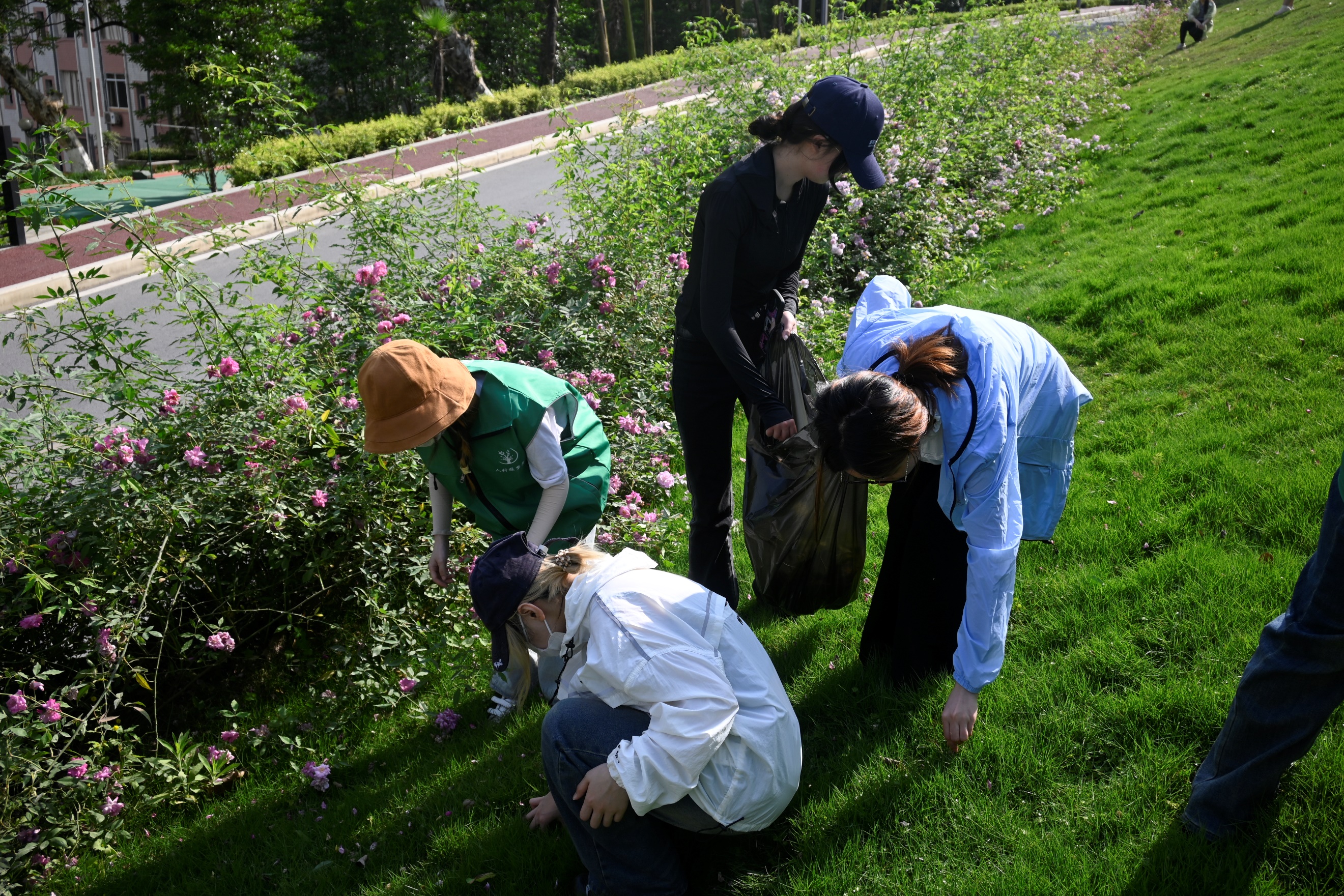 图3-4 同学们为草坪进行除草作业