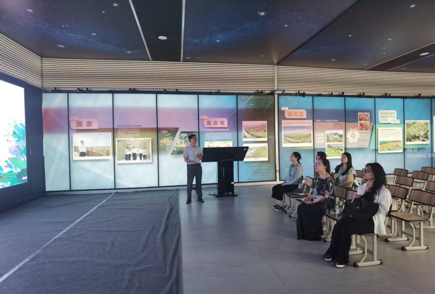 嘉卉艺禾公司总经理邓国文介绍了企业概况。该公司为渝北区重点农业科技企业,以智慧种苗工厂为核心,年育苗量达1.5亿株,具备行业领先的自动化育苗与数字化管控能力。教师团队实地参观了智能巡检系统与文旅景观园区,对企业在智能生产与景观融合方面的实践有了直观认识。