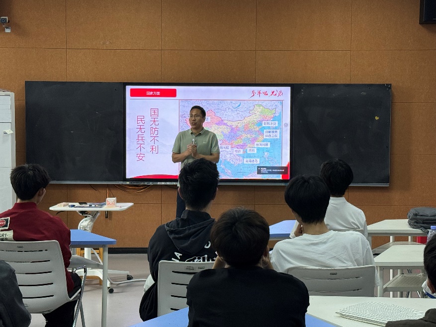 活动伊始,杨老师就2025年征兵的报名条件进行详细解读,从年龄条件、学历条件、身体条件、政治条件,以及2025年春季征兵工作时间节点五个方面分别展开,重点介绍了征兵流程的关键步骤及入伍后的优待政策。同时强调,大学生应征入伍对于个人成长和国家国防建设的重要意义,投身军旅不仅是对青春别样的诠释、是对自我的深度磨砺,更是对祖国的忠诚奉献。