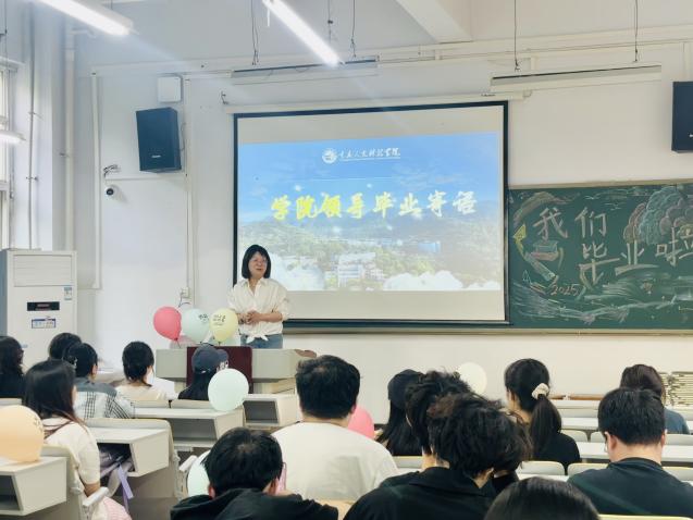 随后,学院领导班子为同学们送上毕业寄语,向毕业生们致以热烈祝贺,叮嘱大家在毕业关键期妥善完成后期任务,做好迎接人生新阶段的心理准备。领导们语重心长地勉励同学们,踏入社会后,要以踏实奋进的姿态投身工作。希望同学们摒弃浮躁,从基础工作做起,以“功成不必在我,功成必定有我”的胸怀,在平凡岗位上深耕细作;以“钉钉子”精神,将每一项任务做到极致,把每一份责任扛在肩头。同时,深情邀请毕业生常回学院看看,字里行间满是不舍与牵挂。最后,唐书记殷切期望每一位学子永葆家国情怀,在各自岗位上发光发热,以优异成绩荣耀母校、报效国家,在时代舞台上续写建院人的奋斗篇章,实现人生价值。