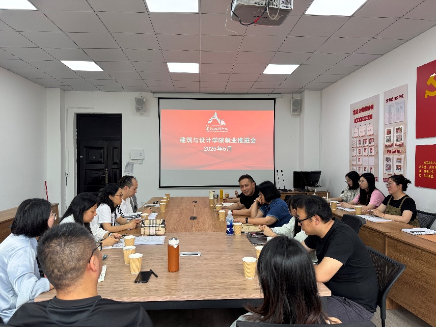 为共同商议2025届就业工作,研究推进当前就业工作进度,促进毕业生积极就业,建筑与设计学院于2025年5月7日中午13:00在慧思楼8203召开2025届毕业生就业工作推进会,学院党政领导班子、各系主任和教研室主任、专业教师代表、就业专员、全体毕业班辅导员参加了此次会议,会议由党总支书记兼副院长唐湘晖主持。