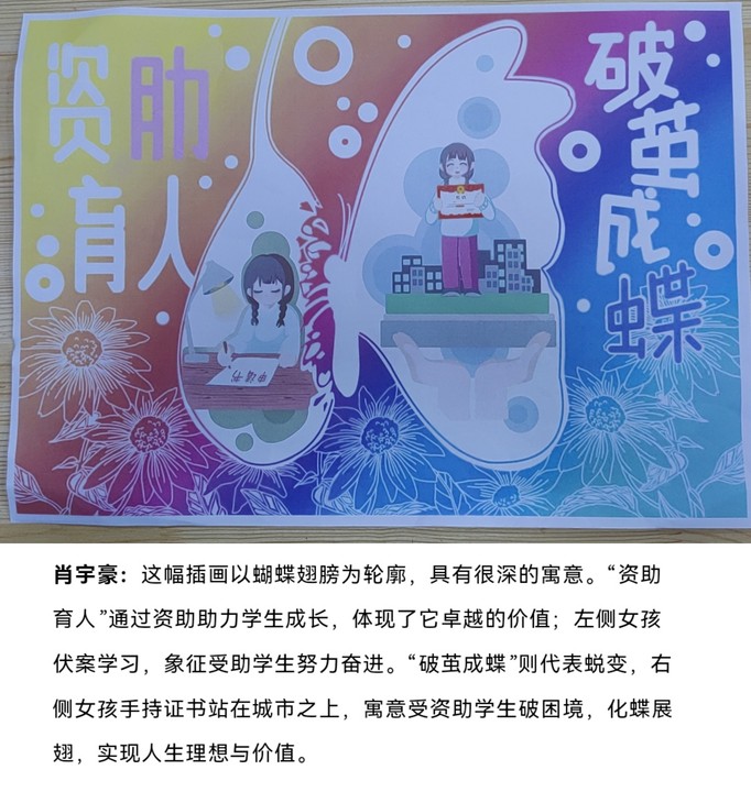 一幅幅插画作品不仅是国家资助政策的艺术化诠释,更是学子感恩情怀的视觉化表达。未来学院将持续创新资助育人形式,丰富资助育人内涵,进一步激发学生自立自强的动力,引导学生将感恩之心转化为实际行动,以更加饱满的热情和昂扬的斗志投入到学习和生活中,努力成长为有理想、敢担当、能吃苦、肯奋斗的新时代好青年。