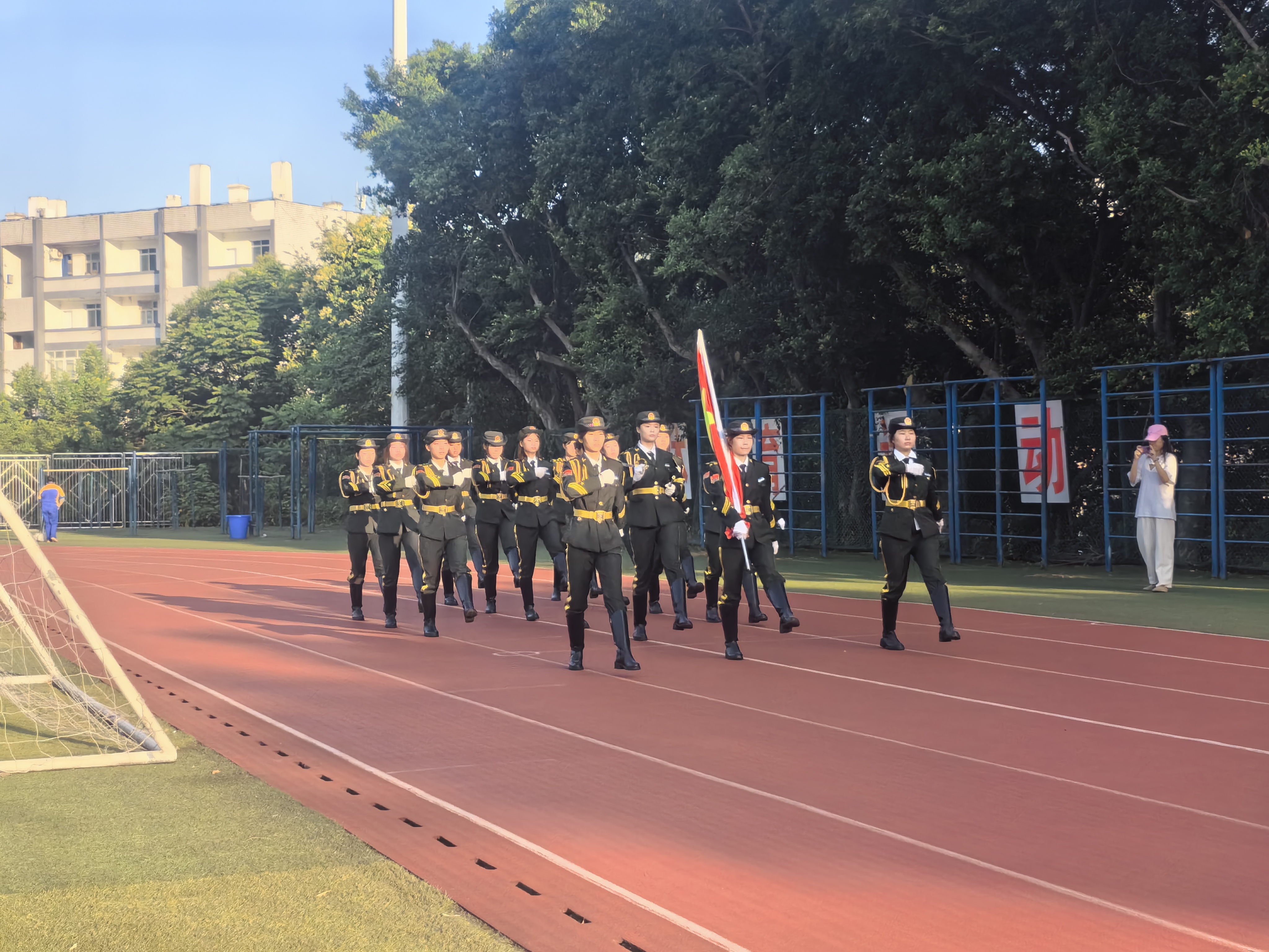 7时整,晨光熹微中,升国旗仪式正式开始!国旗护卫队步伐整齐、精神抖擞,护卫着五星红旗缓缓走向升旗台。伴随着激昂的《义勇军进行曲》,五星红旗冉冉升起,全体师生庄严肃立,行注目礼,齐唱国歌,歌声铿锵有力,爱国之情在每个人心中澎湃激荡。
