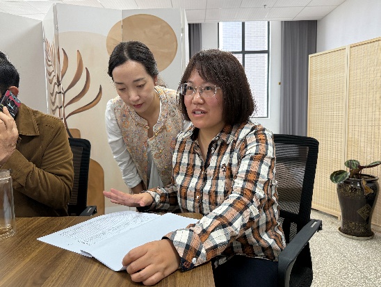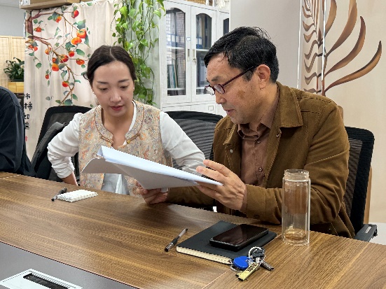 陈龙清教授、杨楠老师对园林园艺系主任唐茜进行指导