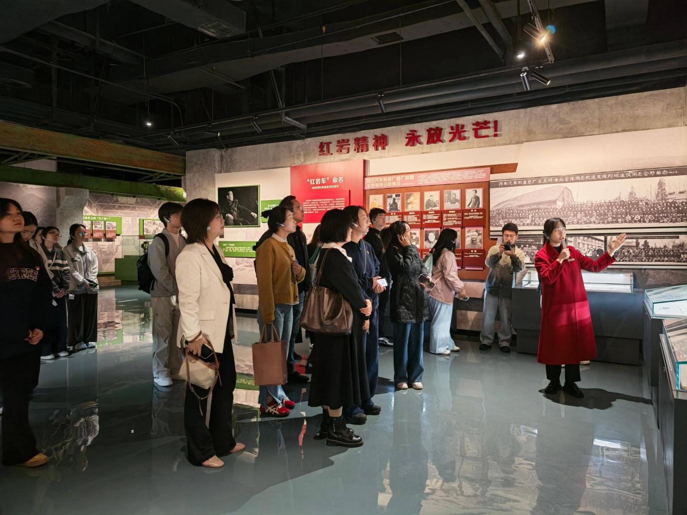 活动以“第一议题”学习开篇,教师党支部支委林竹隐同志领学《习近平谈治国理政》第五卷中“以中国式现代化推进强国建设”相关内容,结合博物馆承载的三线建设奋斗史,引导党员带着思考开启研学之旅。在博物馆讲解员引导下,党员们先后参观“汽车工业奋斗史展区”“红岩精神与工业精神展区”“重器人物故事展区”。从工业遗存中感悟艰苦创业、精益求精的精神,从建设者事迹中学习听党指挥、忠诚担当的使命情怀,实物、影像与史料交织,让红色精神可感可触,为后续专业融合研讨奠定思想基础。