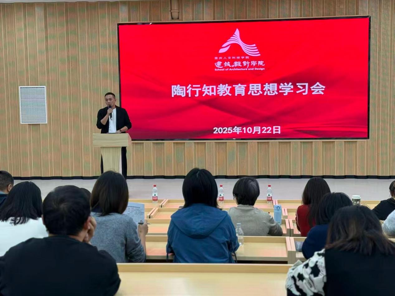 2025年10月18日是陶行知先生诞辰纪念日。为传承“爱满天下”的教育精神与“教学做合一”的实践理念,重庆人文科技学院建筑与设计学院于2025年10月组织开展了“学行知·守初心·践使命”系列递进式学习实践活动。活动覆盖全院师生,形成一股“行知热”,贯穿理论研讨、教学创新与社会实践,推动行知教育思想在专业教学中焕发新时代光彩,为培养新时代设计人才注入活力。