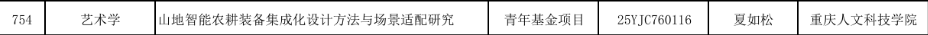 近日,教育部社会科学司发布了《教育部社科司关于2025年度教育部人文社会科学研究一般项目立项的通知》,我院教师夏如松主持的《山地智能农耕装备集成化设计方法与场景适配研究》课题获批立项2025年度教育部人文社科青年基金项目。本次立项是我院首次获批教育部人文社科基金项目,也是我院在人文社科项目的重大突破。
